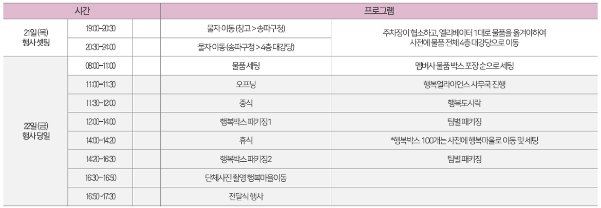 ○ 행 사 명 : 2018 행복얼라이언스 기프트 박스행사 지원