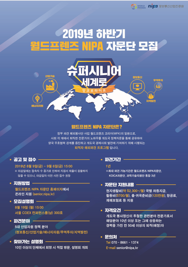 [월드프렌즈] 2019년 하반기 월드프렌즈 NIPA 자문단 모집(~9/6)