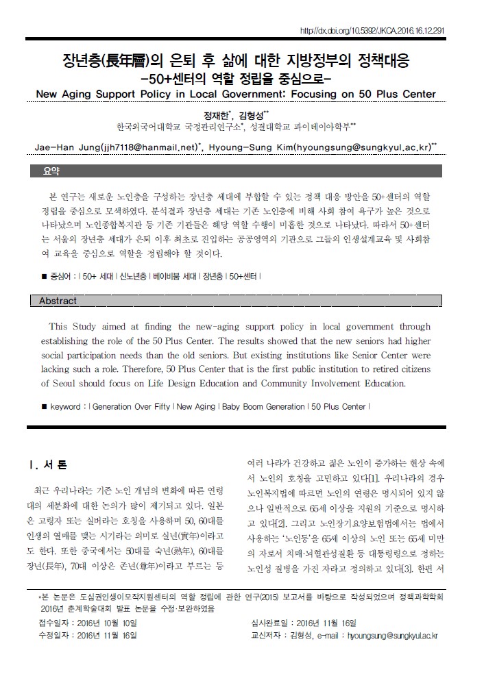 • 장년층 세대에 적합한 정책 대응 방안을 50+센터의 역할을 중심으로 모색한 연구.