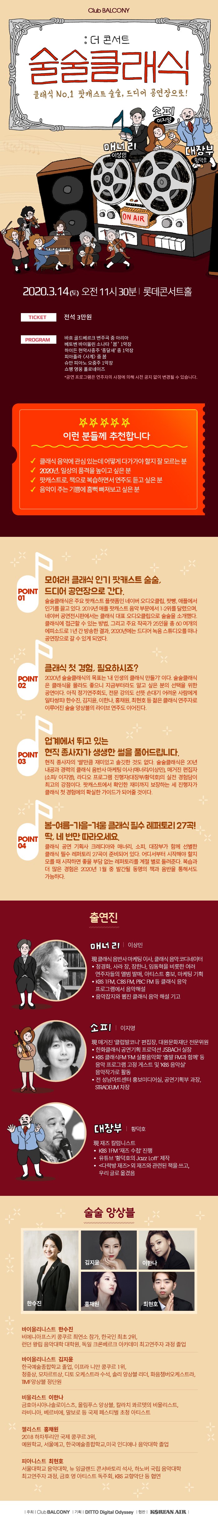 ■ 일시장소 : 2020년 3월 14일(토) 오전 11시 30분ㅣ롯데콘서트홀