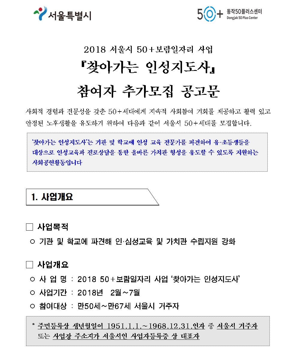 첨부파일2-2018년 서울시 보람일자리사업 찾아가는인성지도사 추가 모집공고.hwp