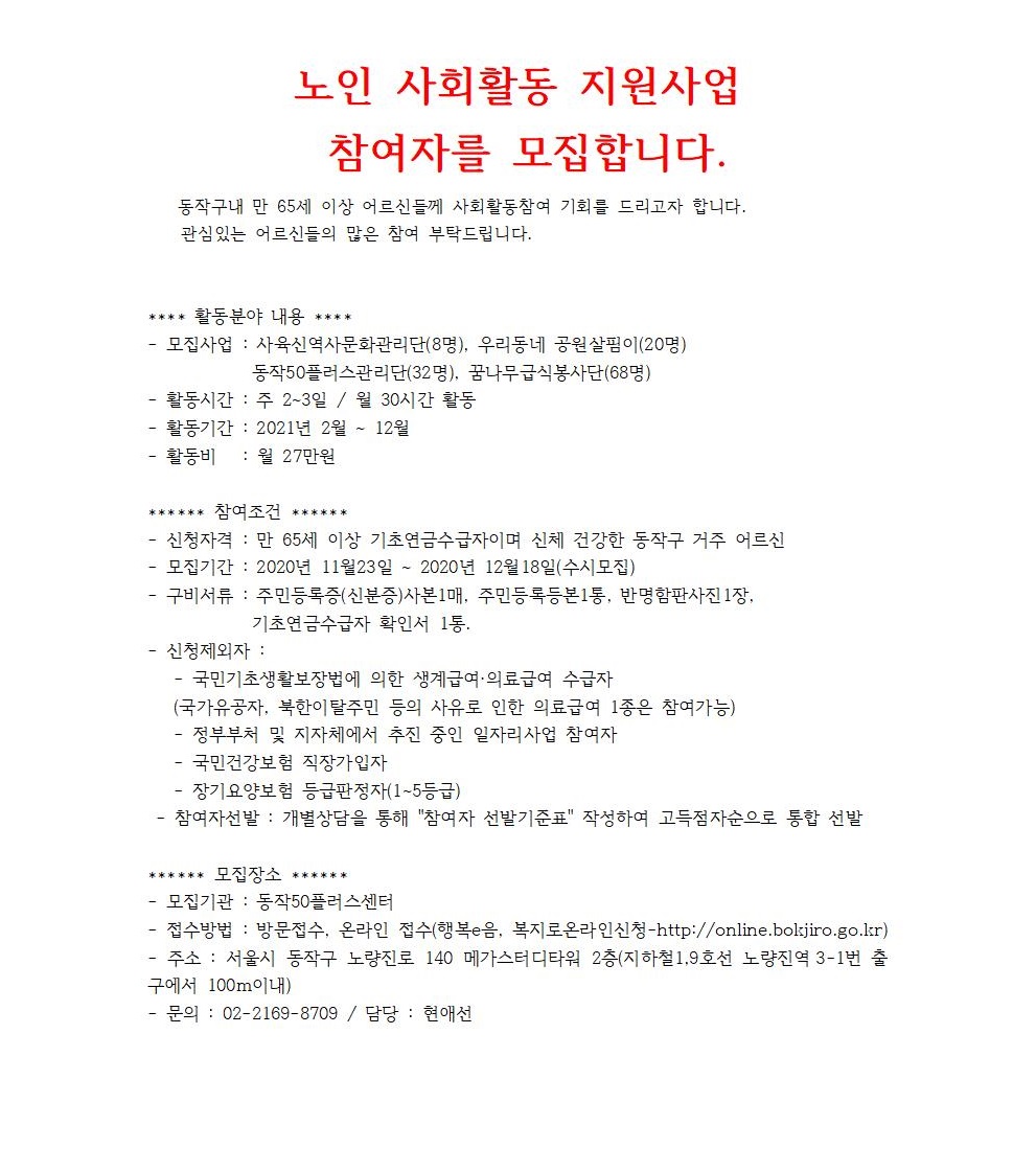 2021 노인 사회활동 지원사업 참여자 모집(공익형)