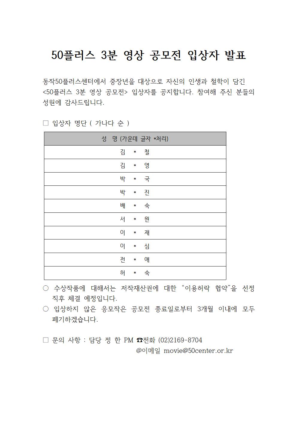 50플러스 3분 영상공모전 입상자 홈페이지 공지.hwp