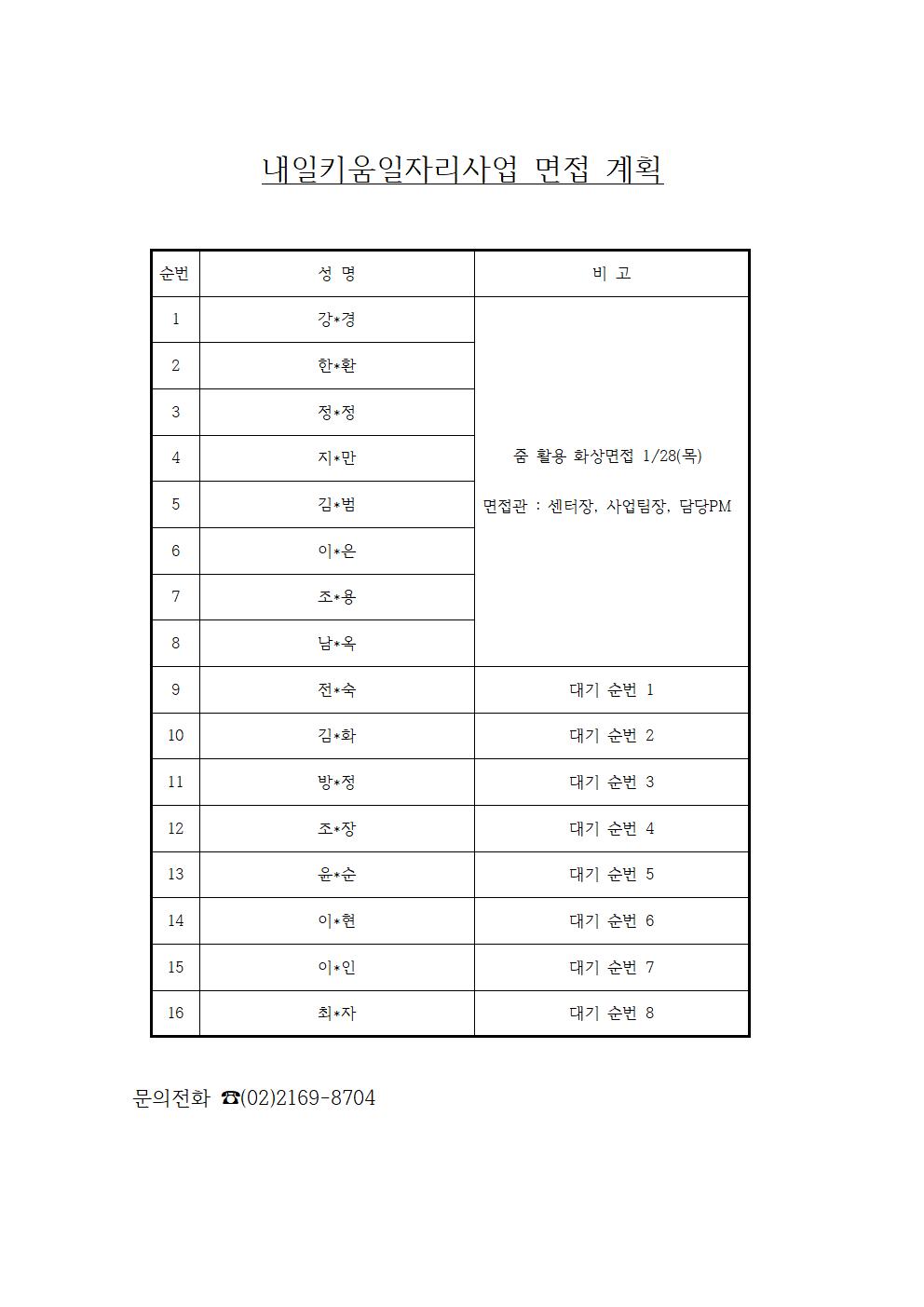 ※ 화상면접 대상자들에게는 면접 전에 사전 연락을 드립니다.