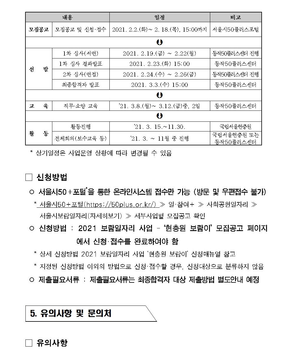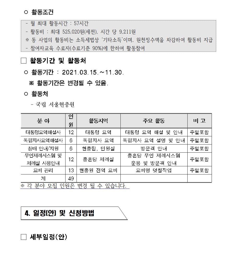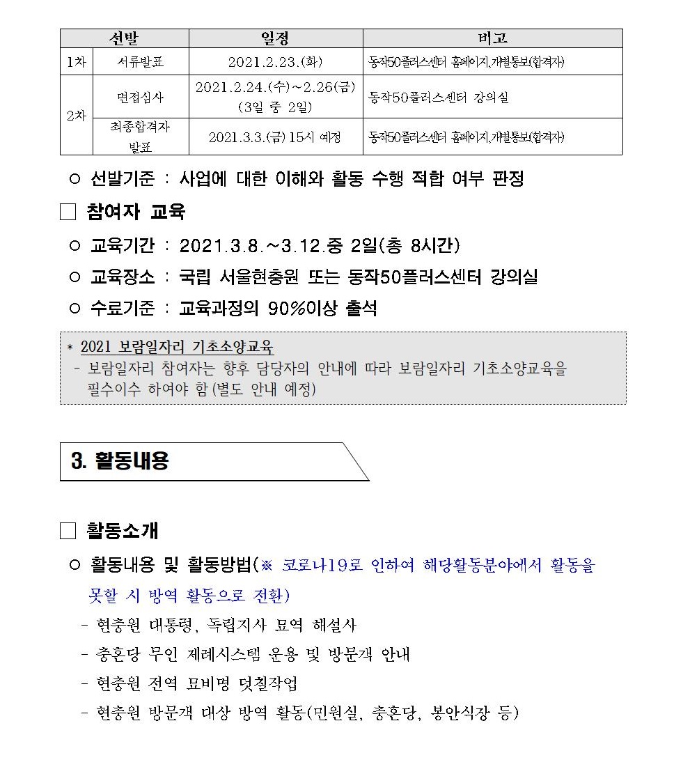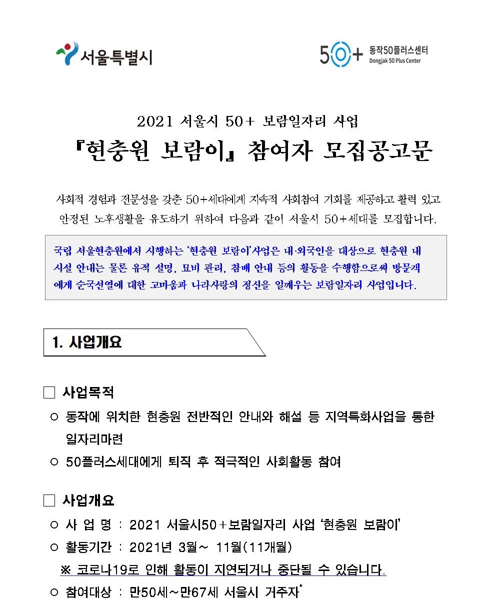 현충원 보람이(2021 서울시보람일자리사업 ) 참여자 모집