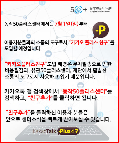 동작50플러스센터 카카오 플러스 친구 도입 안내