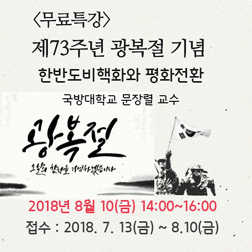 제73주년 광복절 기념 무료특강 - 한반도 비핵화와 평화전환