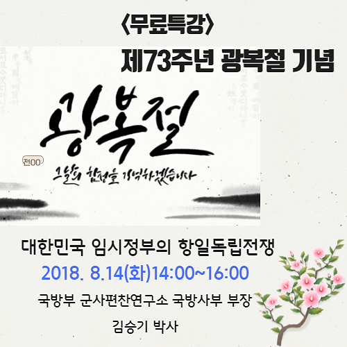 제73주년 광복절 기념 무료특강 - 대한민국 임시정부의 항일독립전쟁