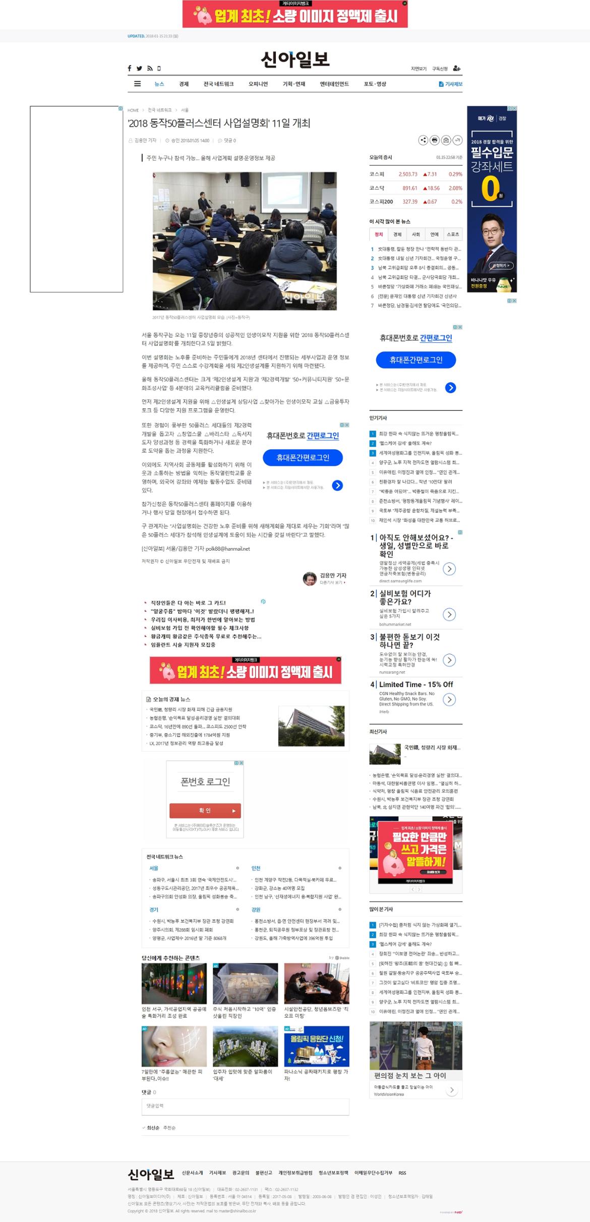 (180105 신아일보) '2018 동작50플러스센터 사업설명회' 11일 개최