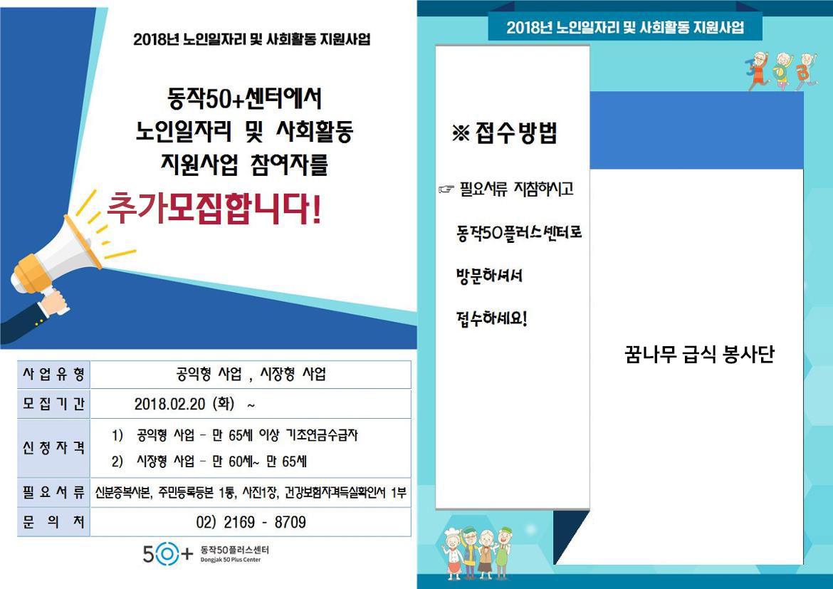 동작50플러스센터 노인일자리 및 사회활동 지원사업 참여자를 추가모집합니다!