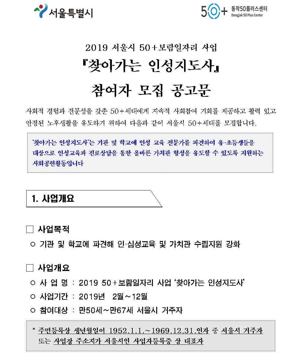 • 첨부파일표시 아이콘2019년 서울시 보람일자리사업 찾아가는 인성지도사 모집공고_첨부2.hwp