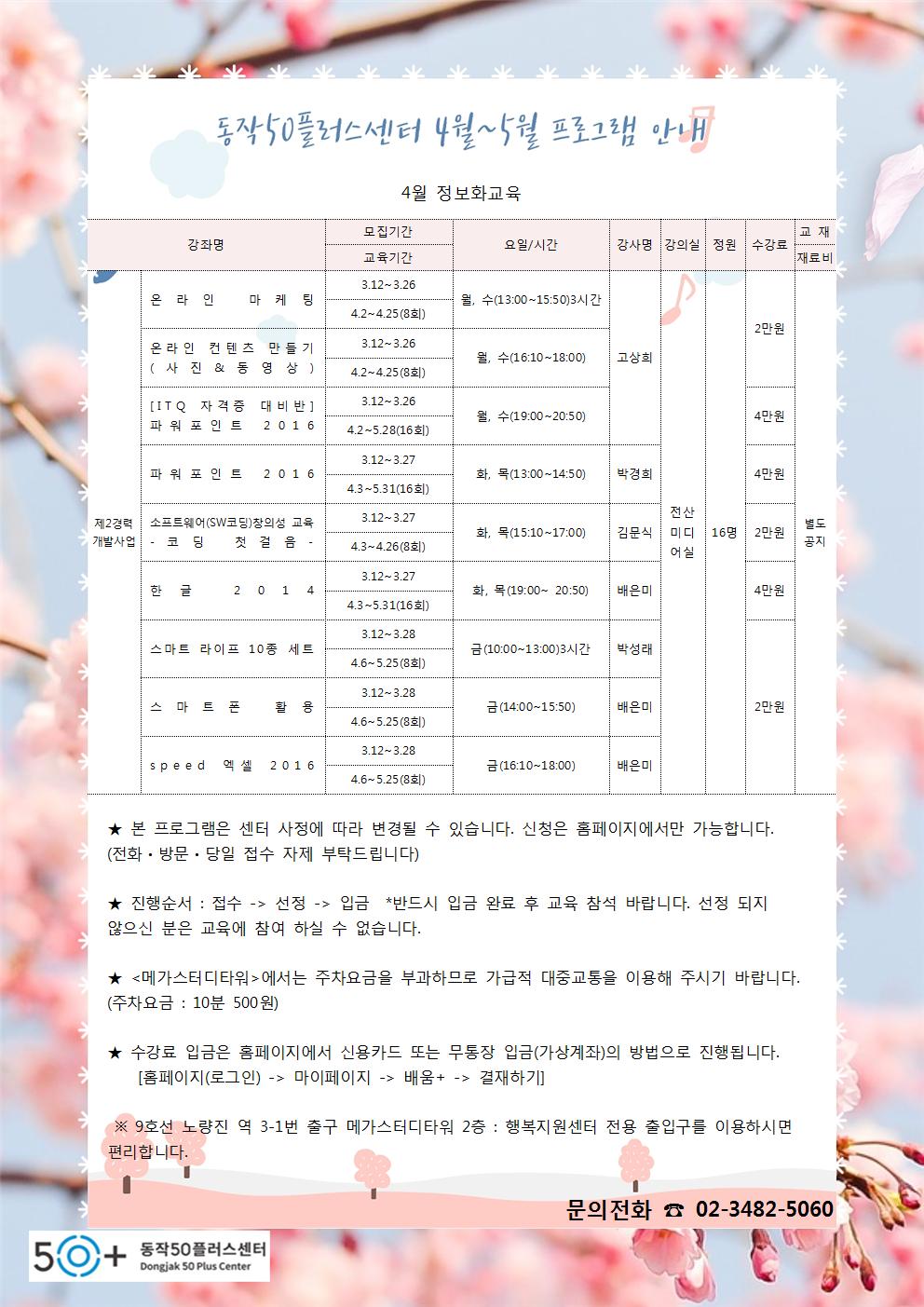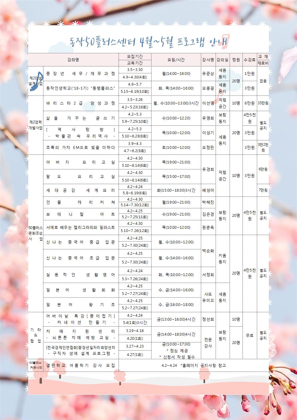 동작50플러스센터 2018년 4월~5월 프로그램 안내