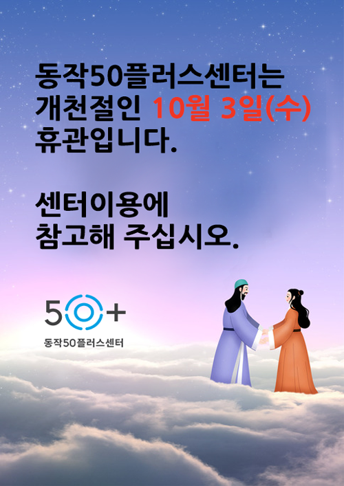 동작50플러스센터 10월 3일(수) 개천절 휴관 안내