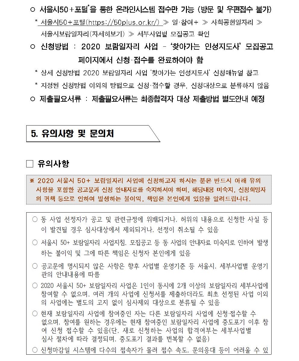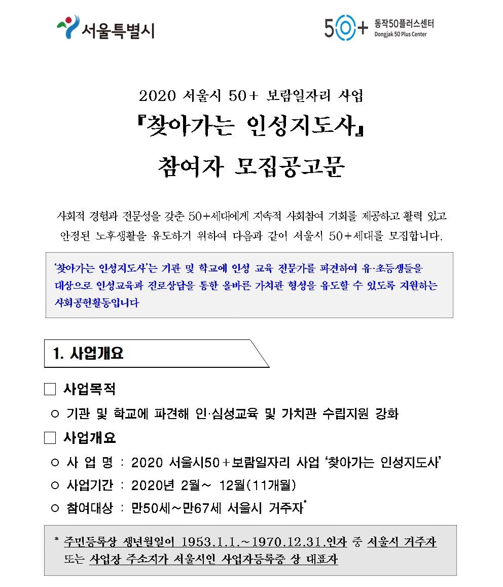 2020 서울시보람일자리사업 '찾아가는 인성지도사' 참여자 모집