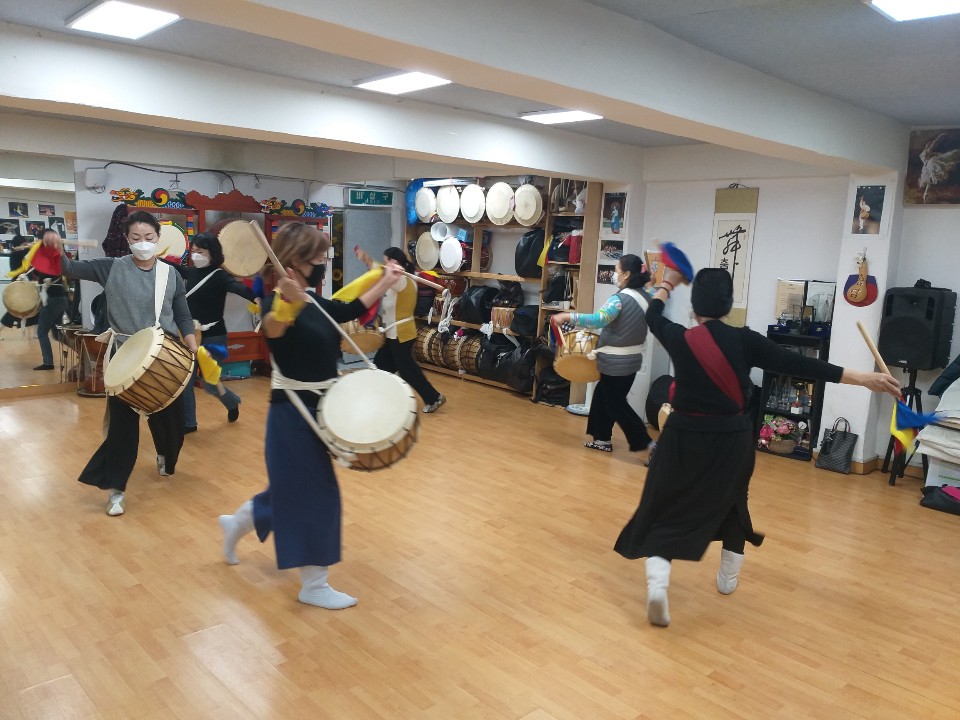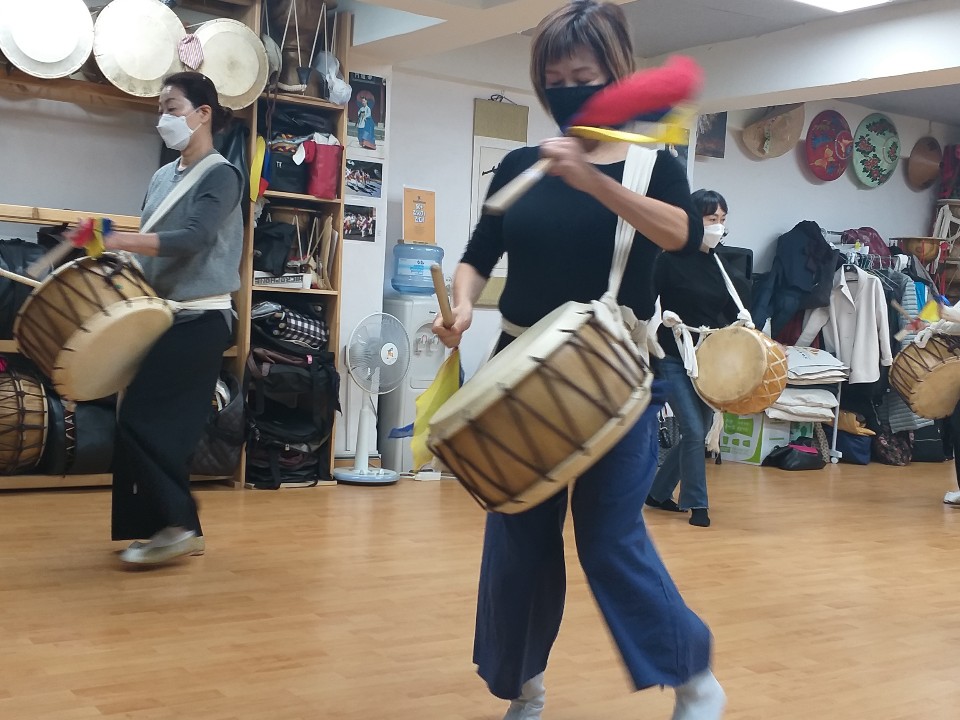방역 때문에 마스크를 벗지 못하고 이렇게 몸을 움직이는 일이 쉽지만은 않을 텐데 그래도 땀이 송골송골 맺히는 이마와 모두 생글거리고 웃는 눈을 마주하니 무엇도 이 열정을 막을 순 없다는 생각이 듭니다. 쿵쿵거리는 북소리를 따라 저도 어깨춤을 추고 싶군요. 어느 분 말씀처럼 우리 몸에 우리 가락이 배어 있어서 북소리, 장고 소리 들으면 몸이 반응하는 건지도 모르겠네요.