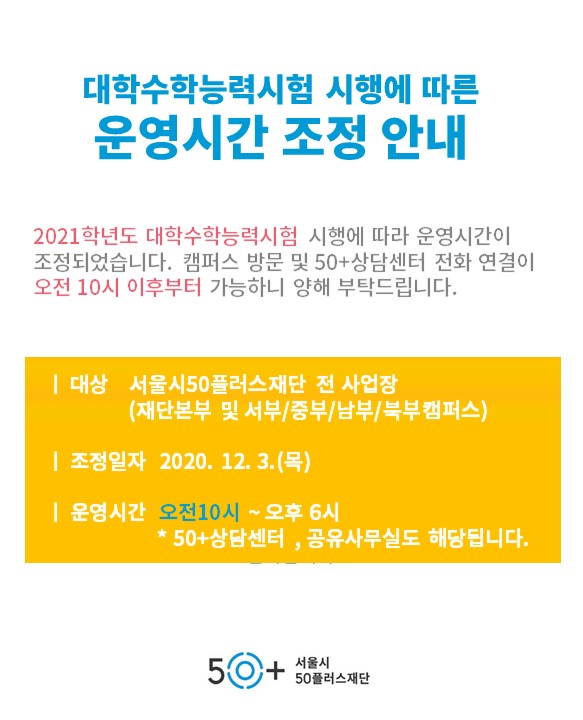 [재단]2021학년도 대학수학능력시험일(12.3) 운영시간 조정 안내
