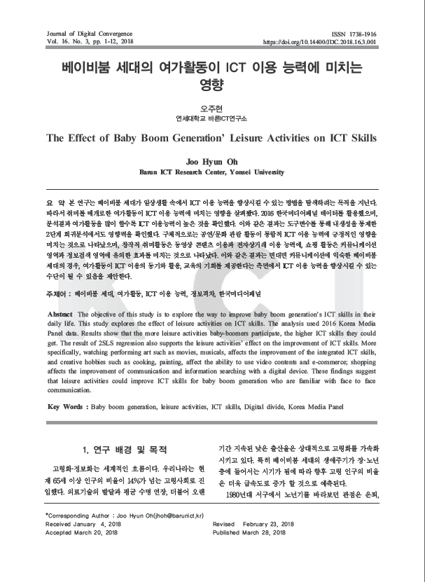 베이비붐 세대의 여가활동이 ICT 이용 능력에 미치는 영향