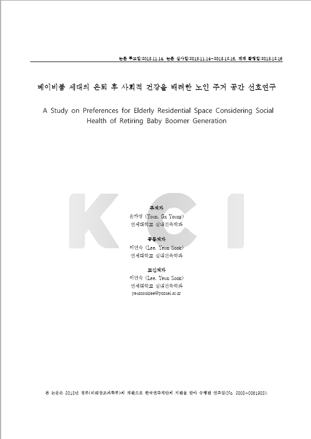 베이비붐 세대의 은퇴 후 사회적 건강을 배려한 노인 주거 공간 선호연구