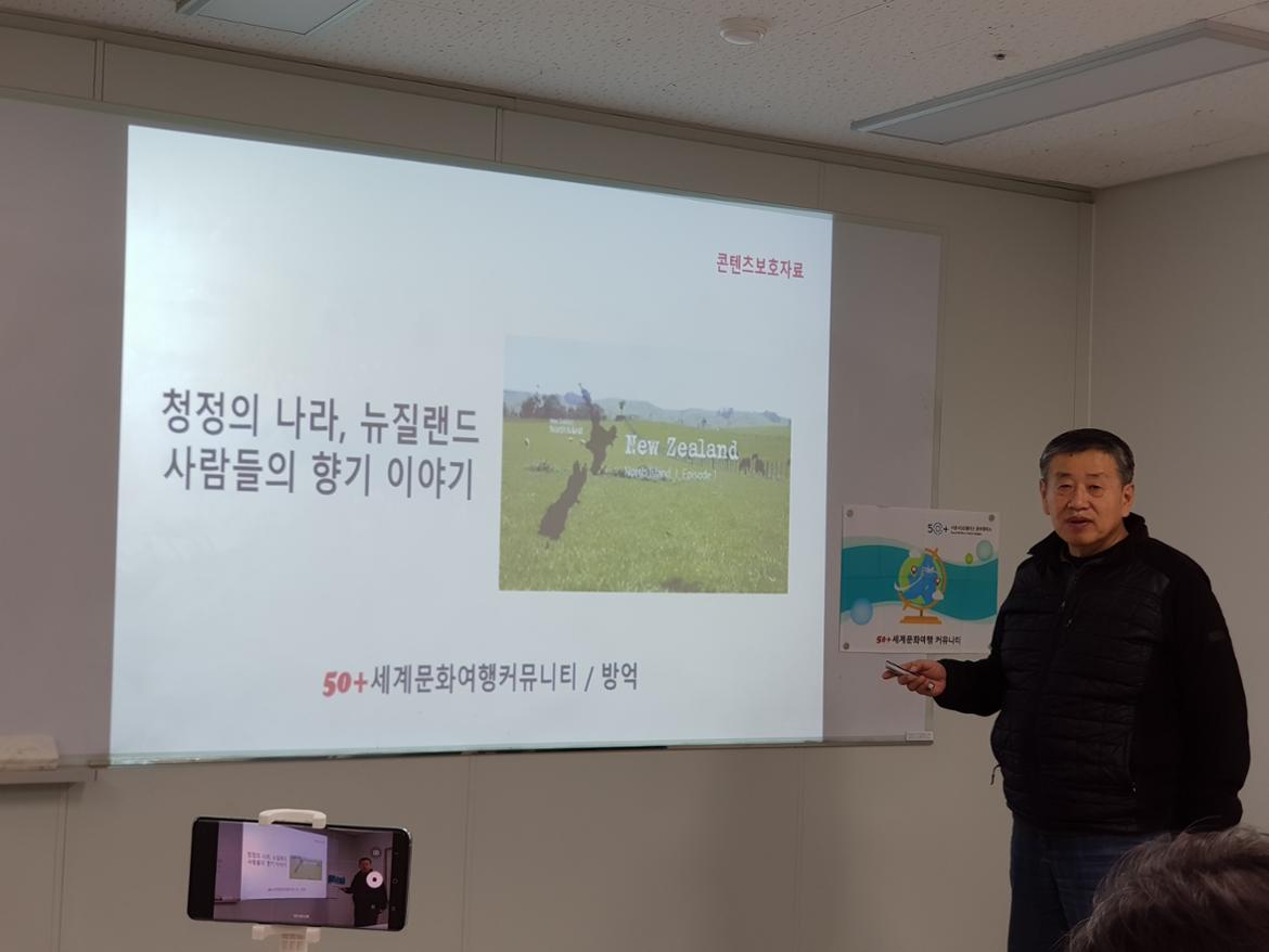 커뮤니티 [50+세계문화여행]의 이명조 회장은 수강생들에게 커뮤니티 참여를 권하며