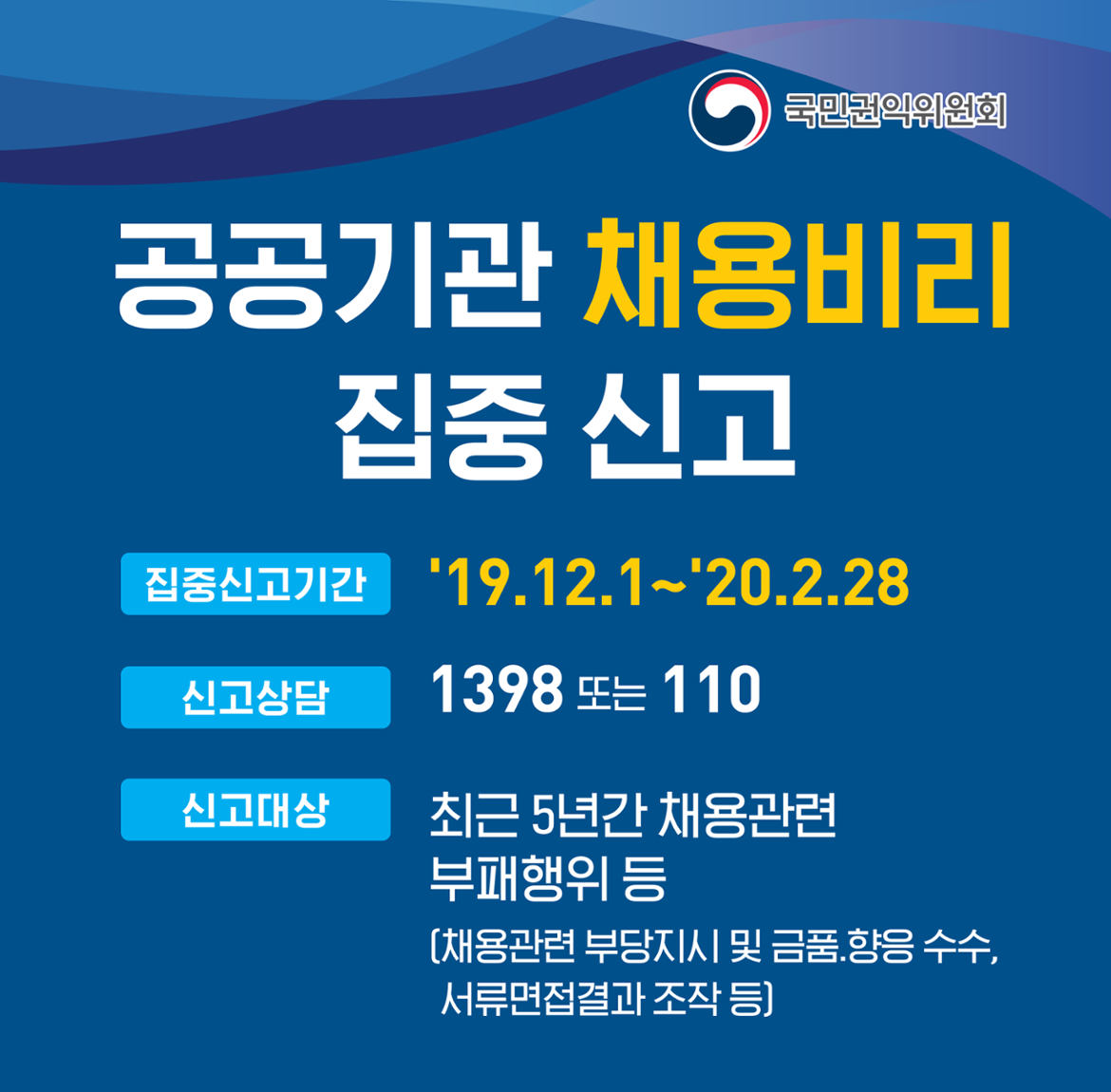 [국민권익위원회] 공공기관 채용비리 집중 신고('19.12.1~'20.2.28)