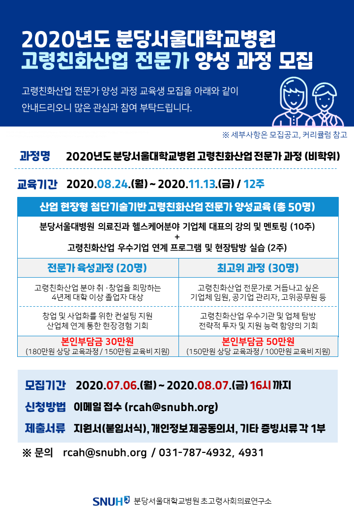 [분당서울대병원] (등록금 인하)고령친화산업 전문가 양성교육 안내(~8.7)