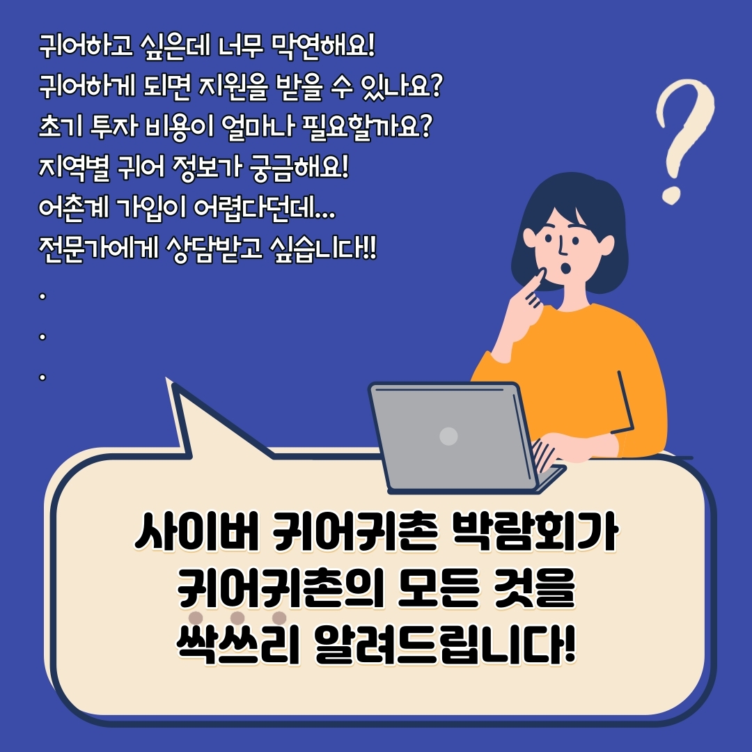• 귀어·귀촌 희망자와 귀어·귀촌에 관심 있는 시민을 위한 온라인 박람회