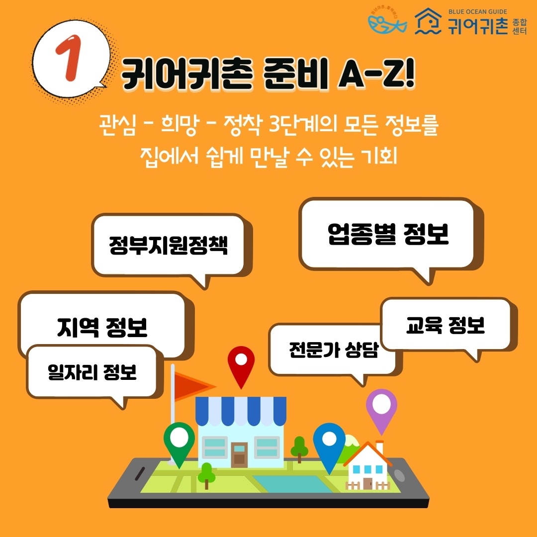 내용 | (온라인) 귀어귀촌 화상 상담 등 (오프라인) 지역 귀어귀촌지원센터(8개소) 이동 상담소 운영