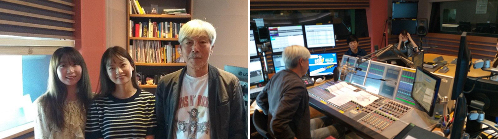 라디오 방송 스튜디오에서 배철수 씨를 만난 플로어스 멤버들. 그는 플로어스를 위해 최대한 많은 기회를 만들고 싶다. (사진 제공: 권오승)