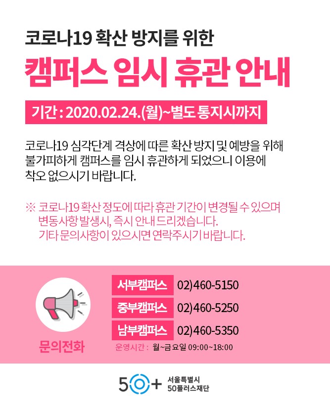 불가피하게 캠퍼스를 임시 휴관하게 되었습니다.
