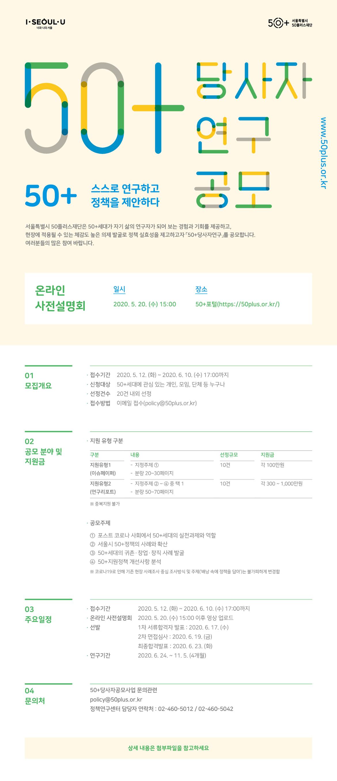 • 첨부파일표시 아이콘붙임1_2020년 50+당사자연구 사업 변경 공고문.pdf