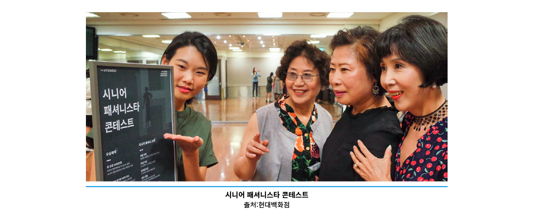 현대백화점은 지난해 10월 눈에 확 띄는 이벤트를 개최했다. 60대 이상 시니어만을 대상으로 모델을 선발하는 ‘시니어 패셔니스타 콘테스트’가 그것이다. 최근 60대 이상 고객의 라이프스타일이 변하면서 새로운 소비 주도층으로 떠오르고 있다. 이들을 잡기 위해 시니어 모델 공개 오디션을 기획했다는 것이 현대백화점 측의 설명이다.