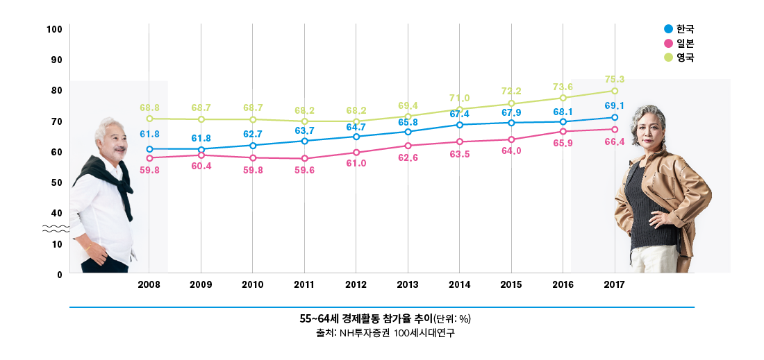 실제로 모델을 꿈꾸며 백화점 문화센터나 전문 아카데미를 두드리는 중장년층이 최근 가파르게 증가하고 있다. 지난 2016년까지만 해도 현대백화점 전국 15개 점포 문화센터에서 모델 워킹이나 자세 교정 등을 배우는 시니어 고객은 2,000여 명에 불과했다. 지난해에는 5,500여 명으로 3년 만에 2.5배나 증가했다. 올해는 지원자가 더욱 늘어날 것으로 회사 측은 기대하고 있다.