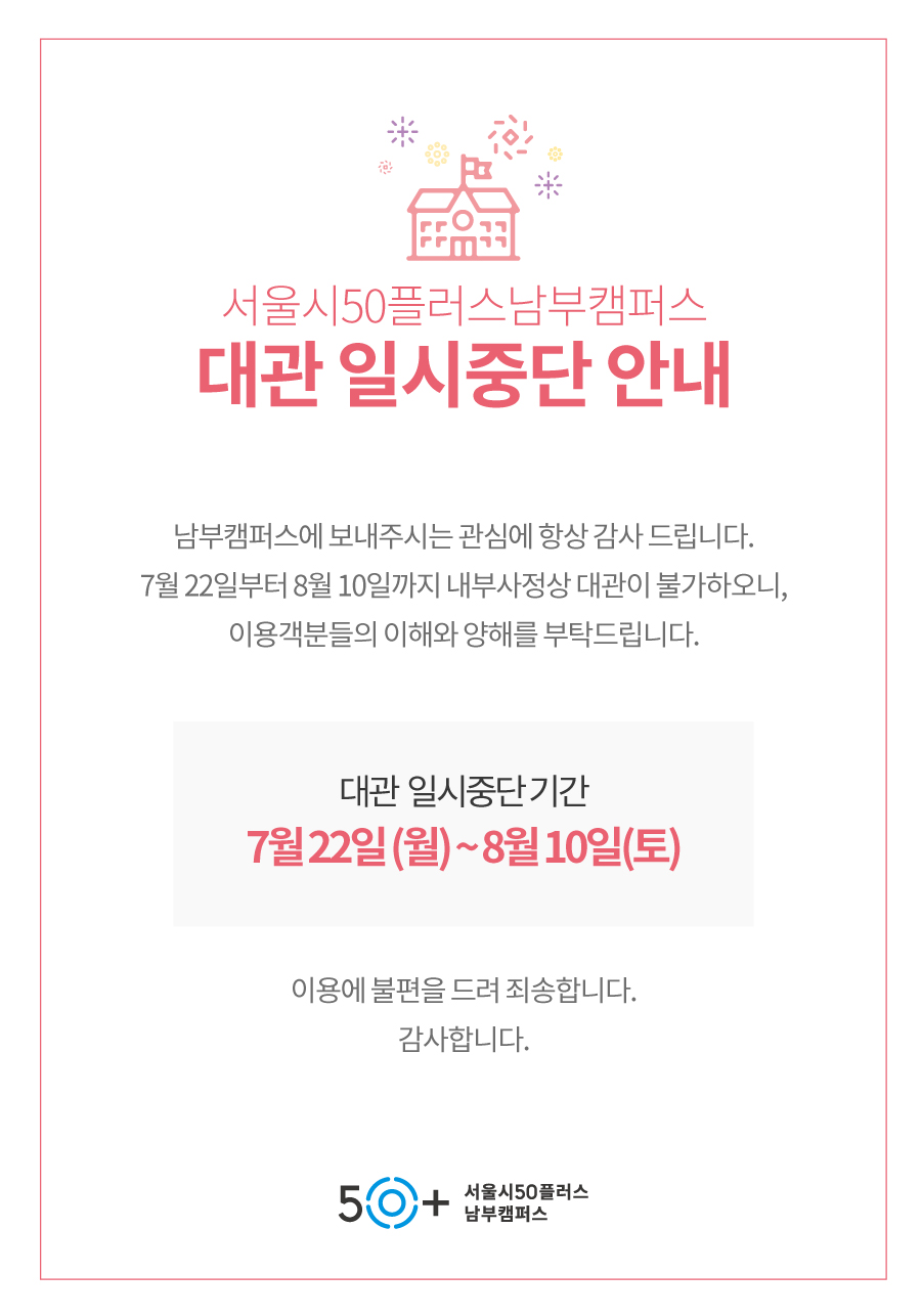 남부캠퍼스 개관행사 "50+남부캠퍼스 열린데이" 개최 안내