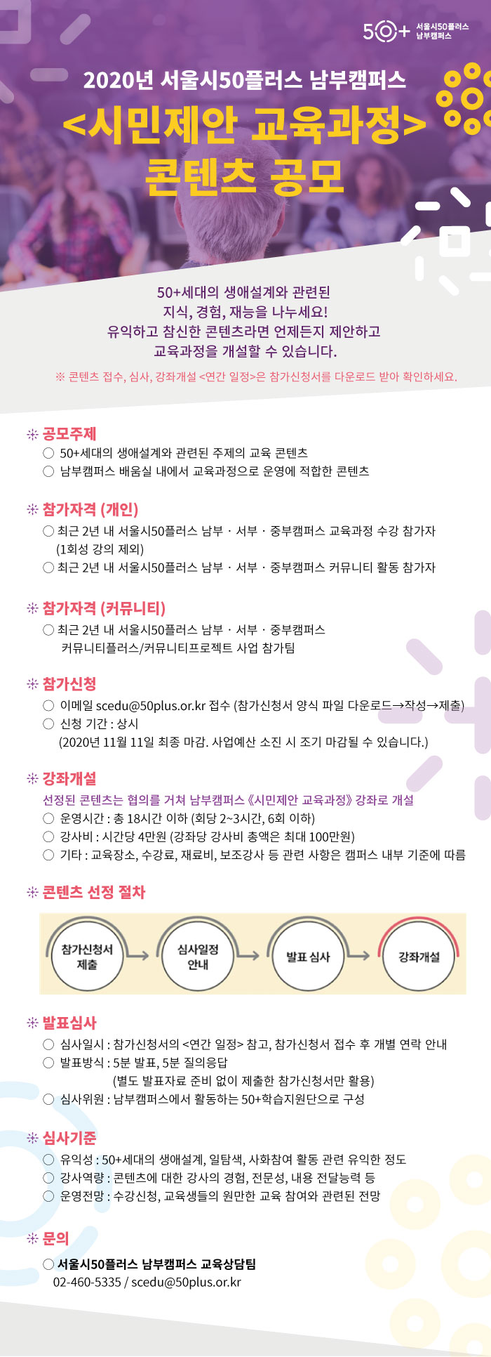 남부캠퍼스 개관행사 "50+남부캠퍼스 열린데이" 개최 안내